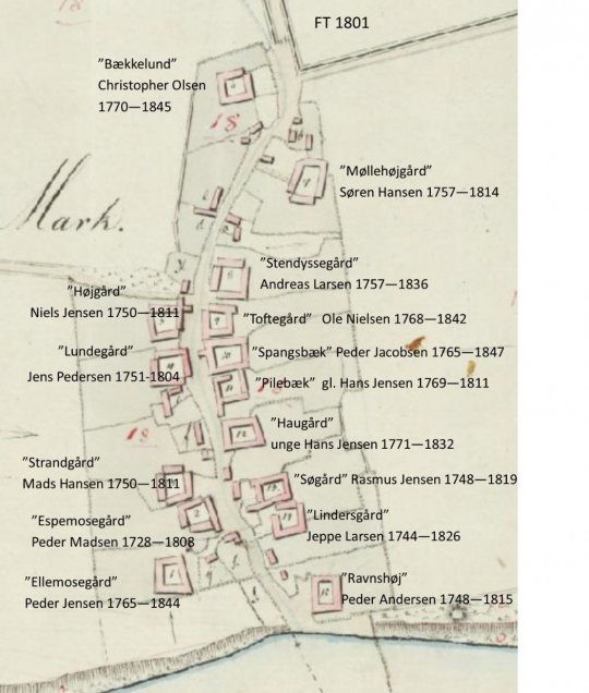 Ved FT 1801 har også "Espemosegård" og "Højgård" inderster og derfor sandsynligvis hver et inderstehus.